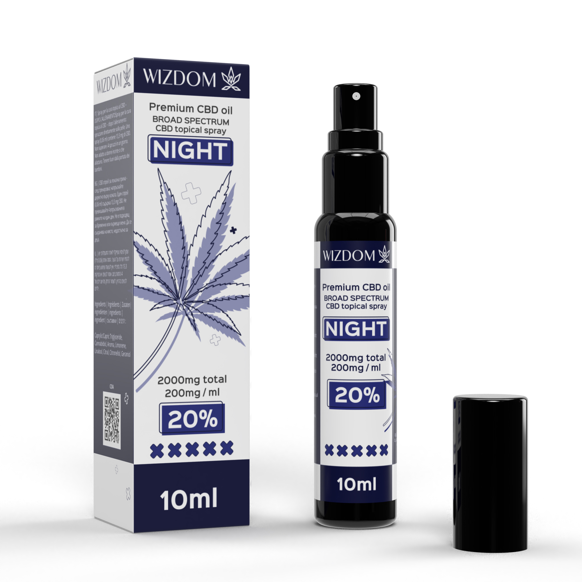 תרסיס זה מיועד לשימוש חיצוני בלבד (התזה על העור ועיסוי) במקרים של כאבי שרירים כתוצאה מדלקת ושרירים תפוסים. תרסיס ה-NIGHT של WIZDOM מומלץ לשימוש בעיקר בלילה בעיסוי עמוק אל תוך רקמות השרירים הכואבים. השמן משאיר אחריו ריח נעים ומרענן. צרכנים מעידים כי התרסיס מסייע בהרפיה של שרירים תפוסים או כואבים.